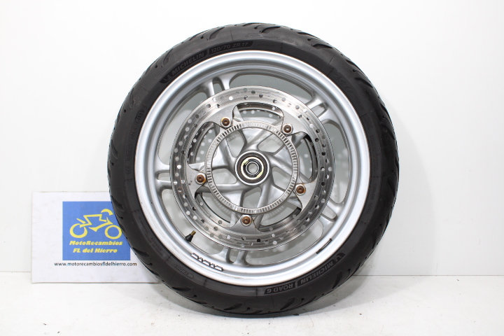 En buen estado de uso , comprobada y desmontada funcionando correctamente , incluye disco ABS , discos de freno en buen estado y neumático Michelin Road 6 120/70/17 58w (4523) con muy poco uso .